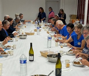 Retour à Valmy le vendredi 9 dans le cadre de la semaine bleue : initiation pour les participants à l’atelier culinaire sur la cuisine catalane. Odette et Thierry ont joué les commis. Au menu « boles de picolat i mungetes » dégustées tous ensemble après les animations. Un régal ...