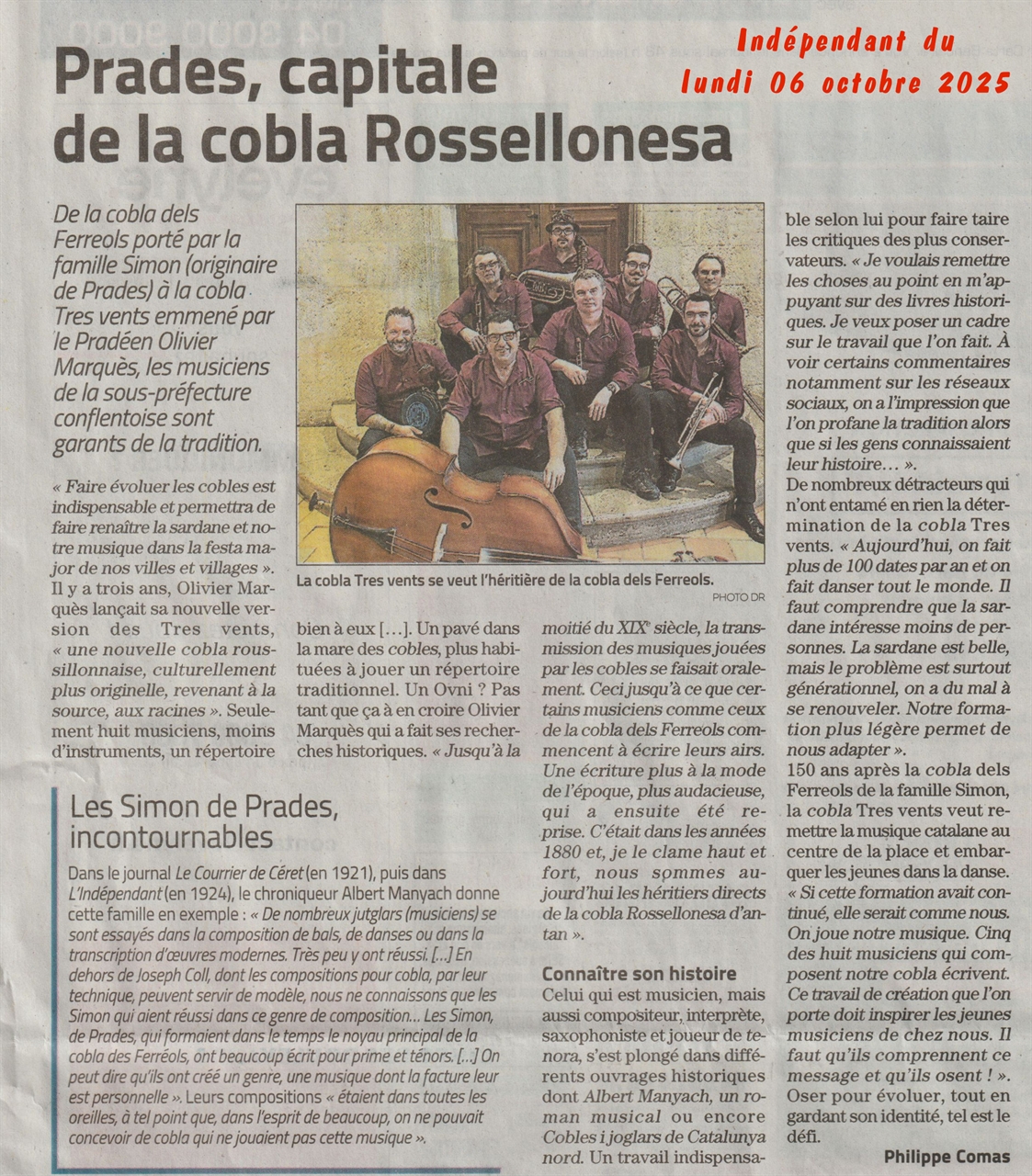 - 1852 l’année charnière pour la cobla actuelle avec la mise au point de la tenora par André Toron (hautboiste réputé à Perpignan) qui a finalisé les améliorations déjà entreprises par son père Valentin à partir du tible initial